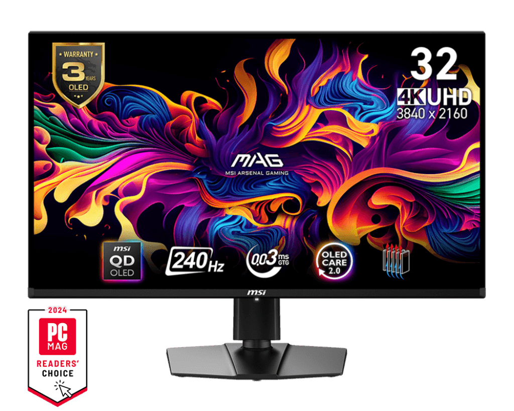 Visualize your victory with the MAG 321UPX QD-OLED gaming monitor. It boasts a 3840x2160 (UHD) next-gen QD-OLED panel, 240Hz refresh rate, and rapid 0.03ms(GtG) response time. VESA certification for ClearMR 13000 and DisplayHDR True Black 400 ensures exceptionally vivid images and mitigates motion blur. OLED Care 2.0 reduces OLED burn-in risks. For console gamers, the MAG 321UPX QD-OLED provide HDMI 2.1 ports with 48Gbps bandwidth, 120Hz support, VRR, and ALLM.