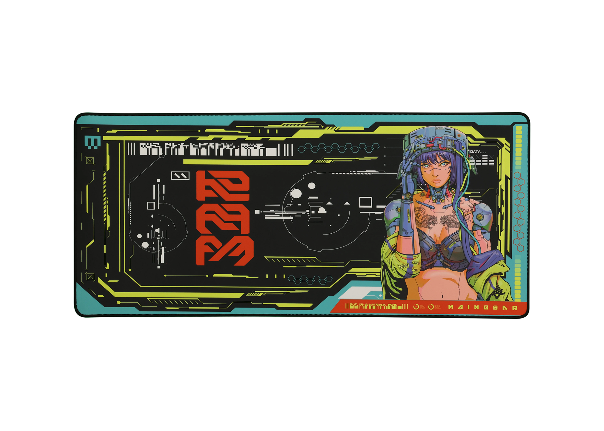 Inspired by the RUSH | Machina, this design fuses cyberpunk attitude with high-tech energy, featuring glitched graphics, neural HUD elements, and a sci-fi cybernetic hero front and center. Electric greens, punchy reds, and neon blues collide in a layout that feels ripped from a futuristic control deck. It’s not just a mat. It’s your digital battlefield.